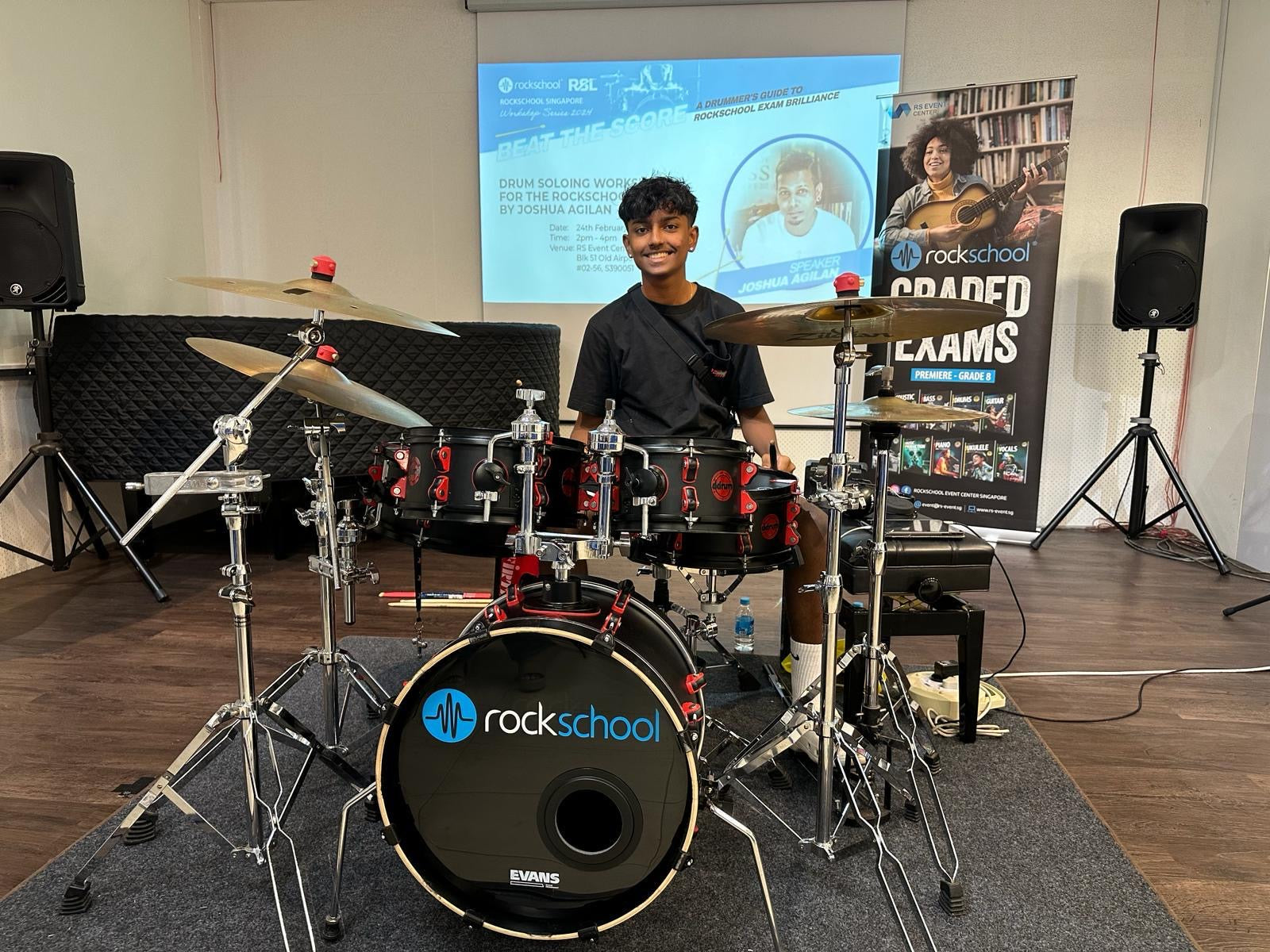 Notably, from a pedagogical standpoint, Joshua Agilan’s impact is reflected in the achievements of his students. They have earned accolades in various competitions, including Safra’s Lil’ Stars 2013, the Best Drummer award at the Asian Beat Band Competition 2016, Cristofori’s Got Talent 2024 and Gold Awards at the Asian Supreme Drum Competition in 2022, 2023 and 2024. Additionally, two of Joshua’s students were successfully admitted into the prestigious Berklee College of Music in Boston after passing their drum auditions held at the School of the Arts (SOTA), Singapore and have since graduated from the institution’s degree program. Additionally, Joshua has showcased his talents beyond drumming by producing and directing several music videos for his band Veritas, all available on YouTube. Currently, he leads the Training & Development of Instructors at Drumstruck Studios and conducts drumming workshops for Institutions and schools.