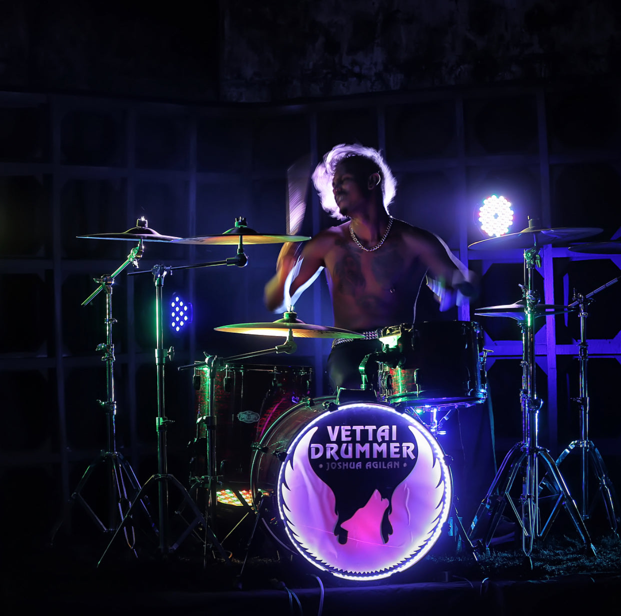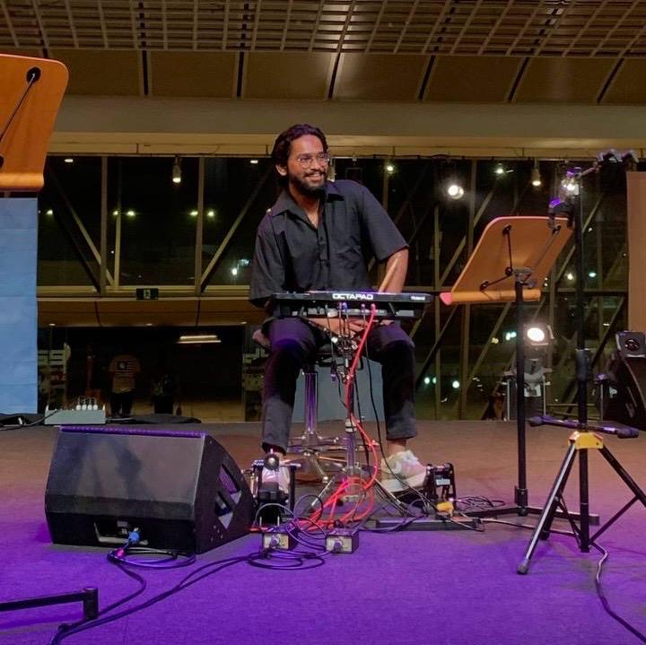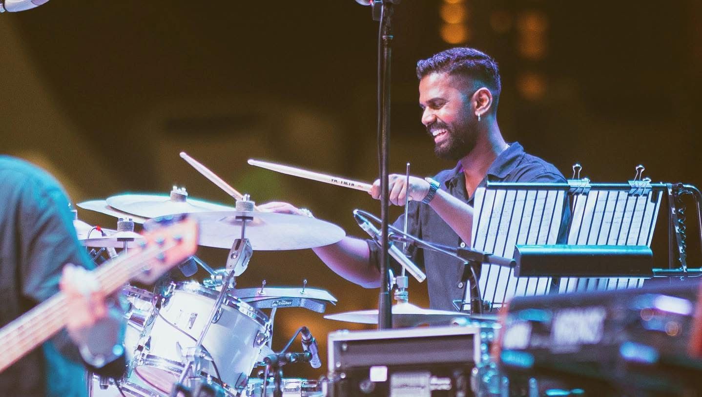 In 2015, Joshua Agilan undertook the pioneering initiative of founding 'Dhoom Super Band,' marking Singapore's first-ever Tamil Live Band Competition. This monumental event was featured on Vasantham's 'Thaalam, Indian Beat' program and resonated as a resounding success, thereby creating myriad opportunities for indigenous Indian musicians. His core aspiration in establishing 'Dhoom Super Band' was to galvanize the participation of Indian youths in live music performance. Joshua's dynamic involvement extends to his role as the founding member of the live band 'Veritas,' alongside his current session work with a diverse array of artists on Vasantham. Besides performing at various gigs for the Esplanade and different clubs in Singapore, Joshua made his mark on the Tamil Live Music scene as the drummer for Shabir. His breakthrough came after recording the drums for the title track of the popular Tamil drama series 'Vettai 2.0' in 2012. Following this, he made his debut in the Tamil Live music scene at the Vasantham Live! Mediacorp’s 50th Anniversary concert held at the Gallery Theatre, National Museum.