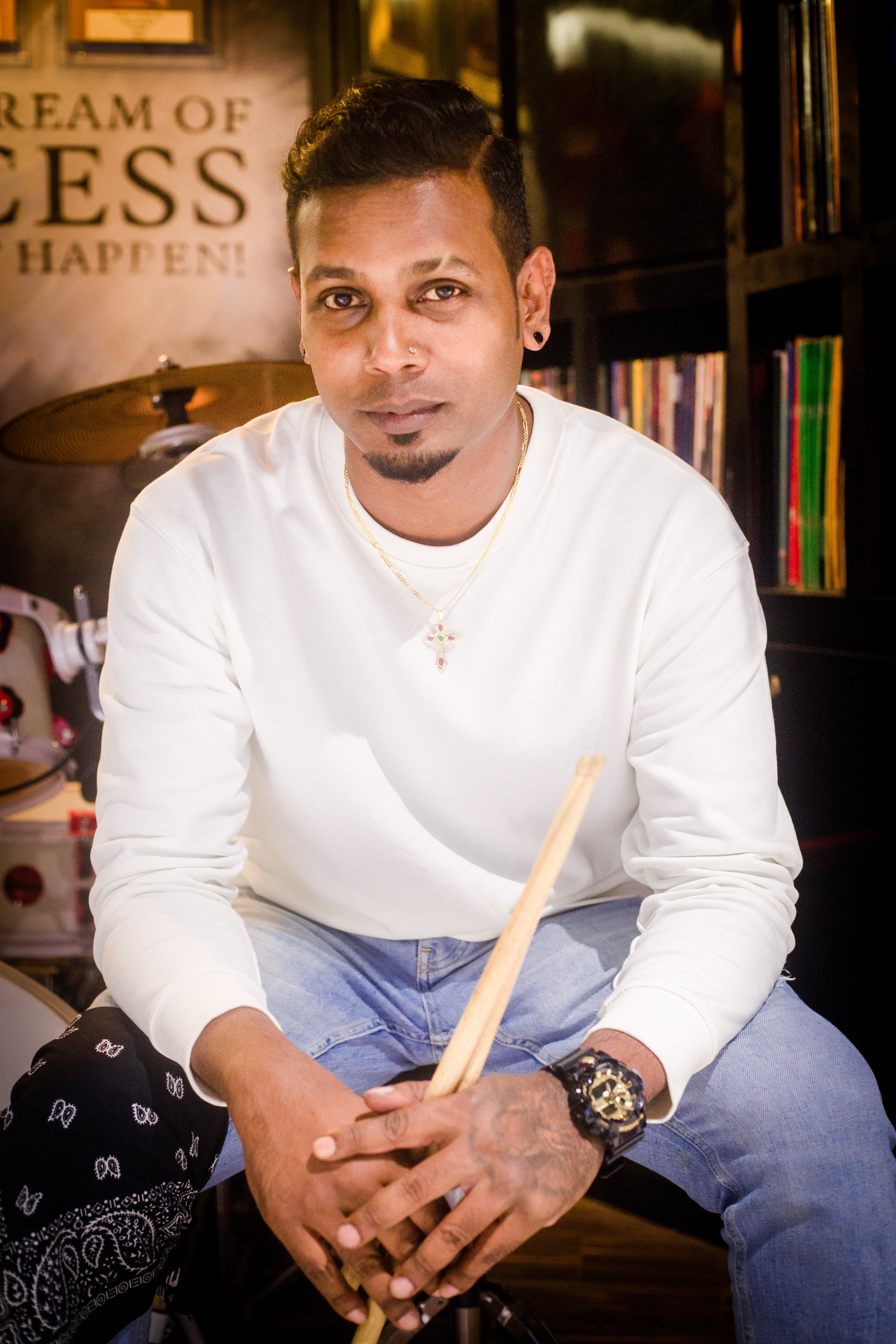 He honed his craft through masterclasses with drumming legends like Thomas Lang, Jojo Mayer, Mike Mangini, Horacio Hernandez, Tommy Igoe, and Dave Weckl. These experiences shaped his unique and energetic teaching style.